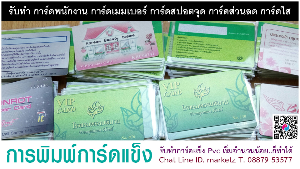 ร้านการพิมพ์การ์ด PVC Card จำนวนน้อยก็ทำได้ พิมพ์การ์ดทุกชนิด Line ID marketz บัตรสมาชิกพลาสติก บัตรเมมเบอร์คีย์การ์ด